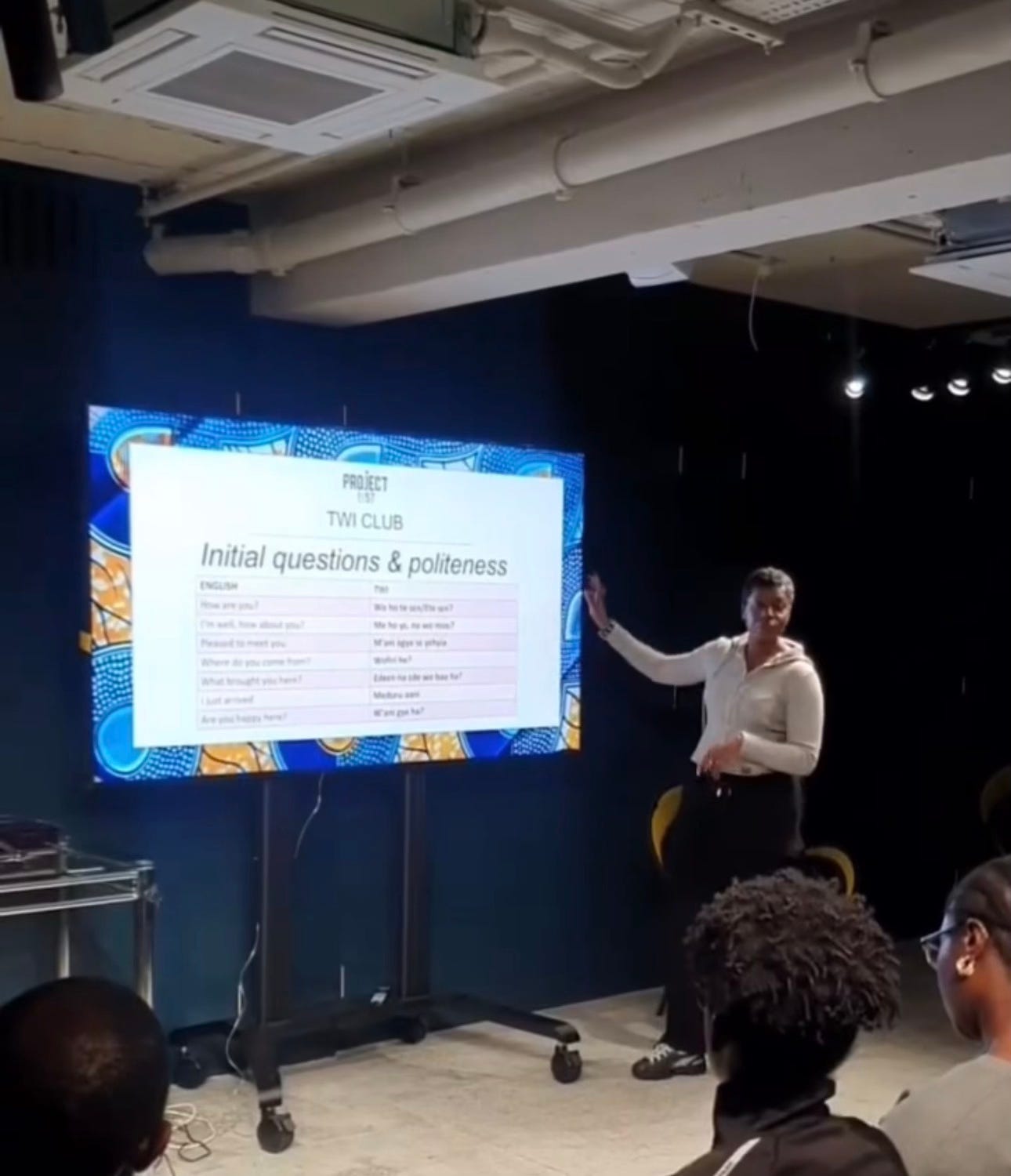 A room full of people learning Twi together like it’s a live show. Laughing, repeating, getting it wrong, trying again.